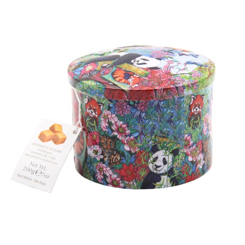 La lata ‘Pandas jugando’ de hermoso diseño contiene lujosos caramelos de vainilla hechos a mano y se inspiró en la vida en la jungla. Solo se utilizan los mejores ingredientes en este delicioso dulce de azúcar. Suave y terso con un aroma dulce y suave, estos caramelos de vainilla se disfrutan en todo el mundo. Las latas son de la más alta calidad y son excelentes recuerdos.