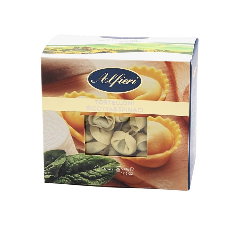 Este Tortelloni con Ricota y Espinaca le alegra el día a cualquiera. Elaborado solo con huevos italianos según la tradición piamontesa. Con ella comienza la historia de una fábrica de pasta que día tras día persigue un objetivo ambicioso: llevar el auténtico sabor de la pasta real a las mesas de todo el mundo. La línea de huevos Alfieri es la protagonista de la tradición italiana, reina de tu mesa.
